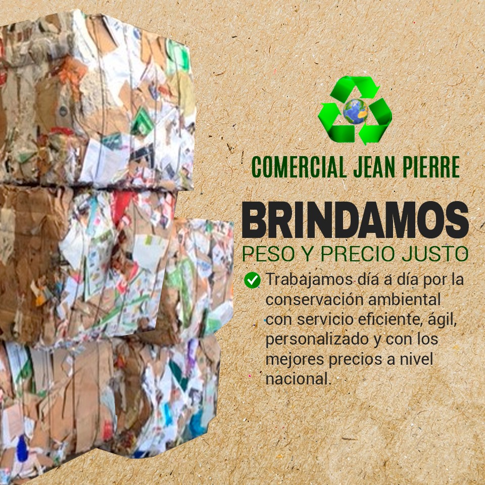 COMPRAMOS COLABORADORES BRINDAMOS NOSOTROS Comercial Jean Pierre empresa recicladora que ha desarrollado sus actividades desde hace 17 años en reciclaje Reciclar Nuestra sociedad es de usar y tirar. Nos es más fácil tirar las cosas que arreglarlas. contacténos